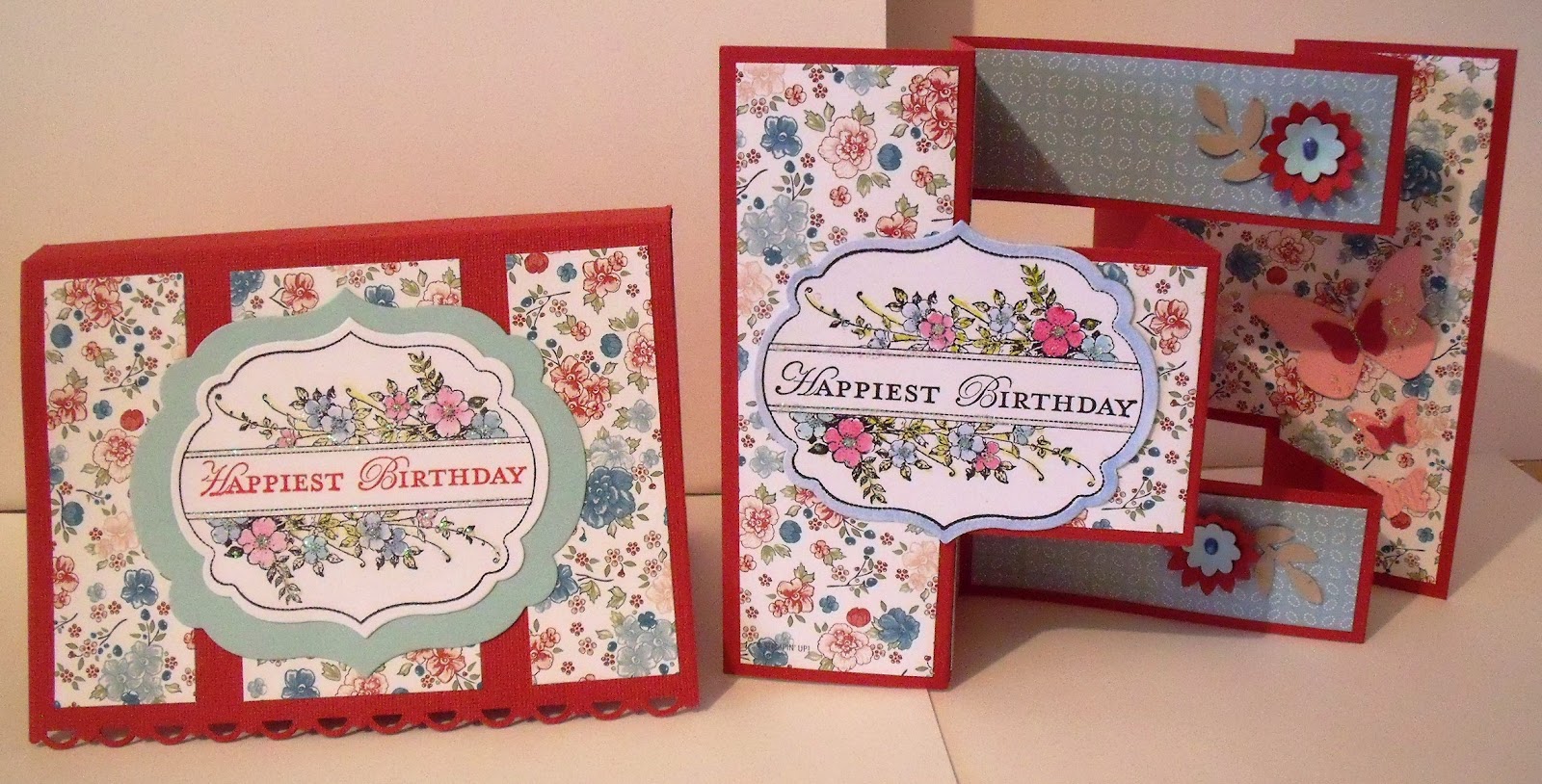 This is a card I made whilst at my sis-in-laws last week. She is really into scalloped easel cards so I thought I would have a go. They are much easier to make than I thought. I did use water colour paper though for the top image and I think it has made the colours look really nice. All Stampin Up products apart from that.